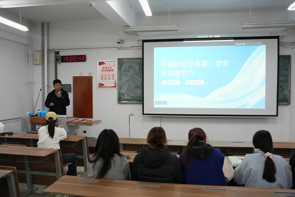 11月6日,yl6776永利集团于教学楼C209举办2025—2026学年第三期青马骨干培训,副科级辅导员王洋洋主讲,全体学生骨干参加。