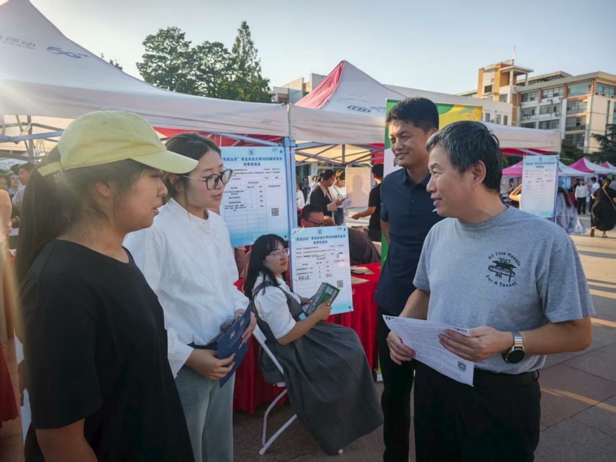 为畅通毕业生与用人单位沟通渠道,实现人才供需精准对接,全力助推2026届毕业生充分高质量就业,9月25日,“就选山东”山东省高校毕业生省级集中招聘活动现代高效农业产业专场暨中国yl6776永利2026届毕业生秋季双选会在虹子广场成功举办。yl6776永利集团党委书记王效仿,党委副书记、副院长盛金玉和辅导员王洋洋深入双选会现场开展实地走访调研。
